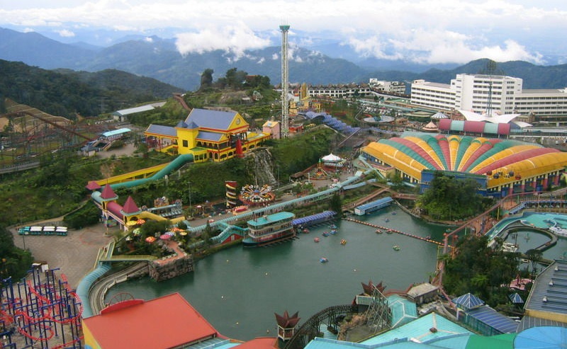 Since 1971, Genting Highlands has remained the only legal gambling outfit in Malaysia, riddled at some sections with kitschy architecture, bright lights and squawking tourists. While the casinos are central to Genting Highlands, the theme park provides fun rides and activities for adults and children alike, while the First World Plaza is a colorful shopping center with a collection of family restaurants and trendy outlets. Meanwhile, more tourist attractions lie within the vicinity of Gohtong Jaya, such as the Strawberry Farm and Chin Swee Temple. Genting Resort offers five major hotels; First World Hotel, the largest hotel in Asia with over 6,000 budget rooms; Theme Park Hotel caters for family accommodation with easy access to the Outdoor Theme Park; Resort Hotel is a midrange choice that bridges luxury and simplicity; Maxims Genting is a five star resort with opulent suites; and the Highlands Hotel is restricted to Genting WorldCard members and casino guests.
